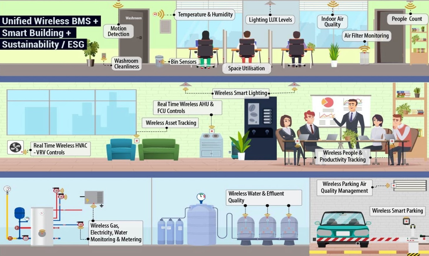 Wireless ESG / GRI Standards Compliance – Temperature & Humidity, Internal Air Quality, LUX, Noise