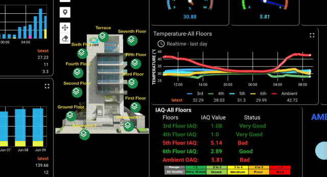Wireless Energy Management System, SBTi Reporting, Wireless Smart Lighting, Wireless ESG / GRI Standards Compliance – Temperature & Humidity, Internal Air Quality, LUX, Noise,Wireless Asset Management, Smart Parking, Smart Washroom, Smart People Count, Smart Leak Detection, Smart Water and Waste Quality / Usage